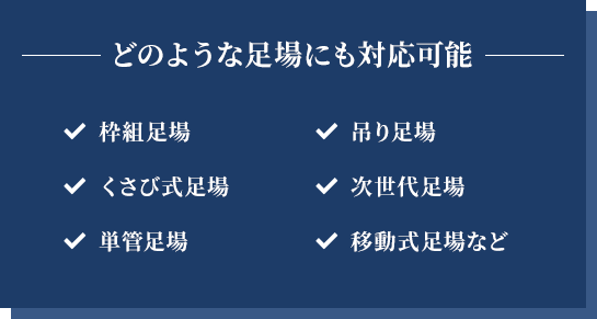 現場に合わせて、安全で作業しやすい足場を、確かな技術で組み上げます。