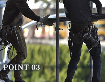 あらゆる現場に対応いたします。在籍する職人全員が一級とび技能士の資格を保有。